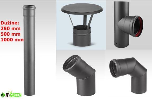 Elementi za dovod svježeg zraka za peći i kotlove, razni reduciri sa i bez rozete, kape, koljena 90 ° i 45 °, zidni nosači, razni nastavci, T - komadi...