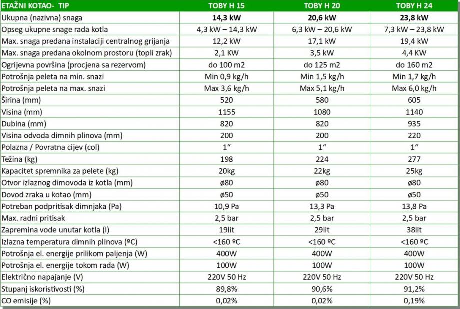 Kotao TOBY ispunjava najstrožije ekološke zahtjeve kad su u pitanju emisije štetnih čestica. Sve emisijske vrijednosti su u okviru najviših referentnih vrijednosti koje propisuju striktne norme pojedinih EU zemalja.