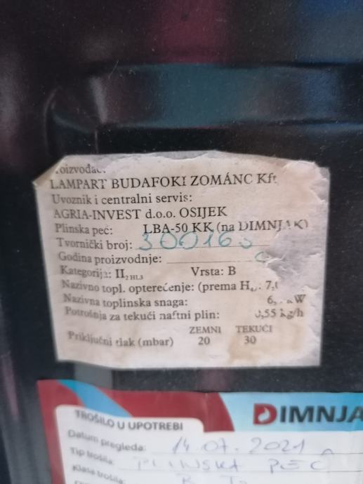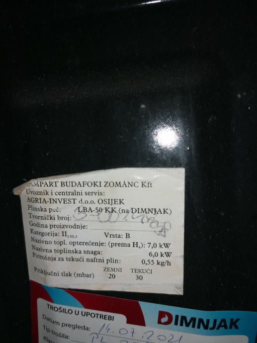 Prodajem dvije iste peći na plin, 125€ po komadu, spremne za dimnjak, za fasadu potrebno dokupit fasadnu dimnjaču