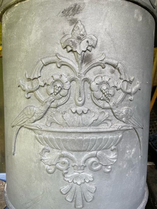 Gusnata peć “Kraljica” s motivom ptica na fontani.
