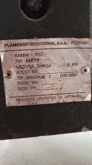 Prodaje se gusnata peć Plamen International d.o.o., Požega, tip Amity, 8 KW.