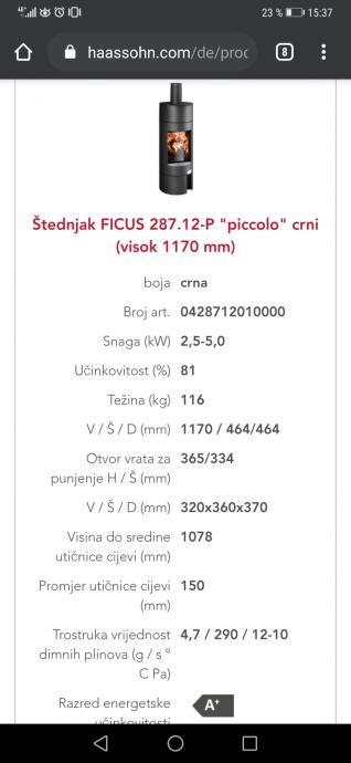 Kvalitetna kaminska peć cijenjenog austrijskog proizvođača, pogodna za niskoenergetske kuće. Ova zima je druga godina kako se peć koristi i stvarno je kao nova. Više informacija potražite na stranicama proizvođača