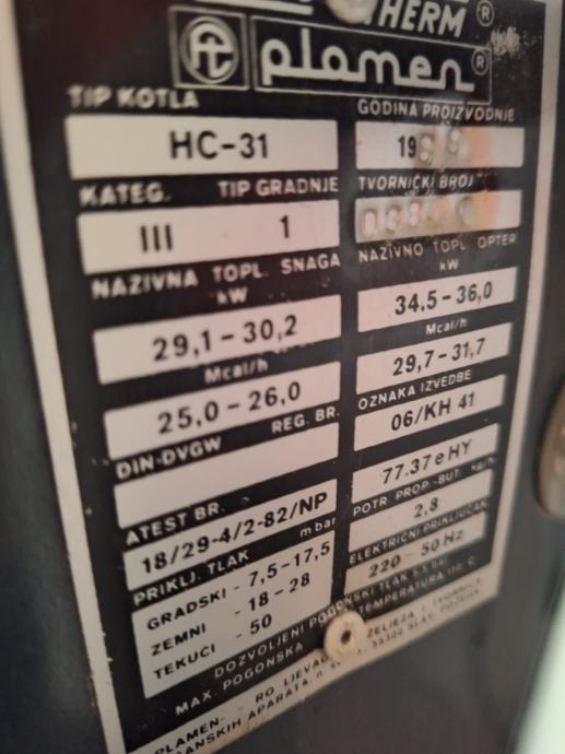 Rabljena, ispravna peć za centralno grijanje, HYDROTERM PLAMEN HC-31, godina proizvodnje 1988.