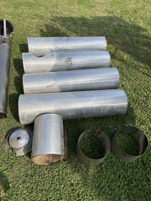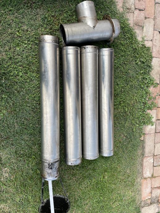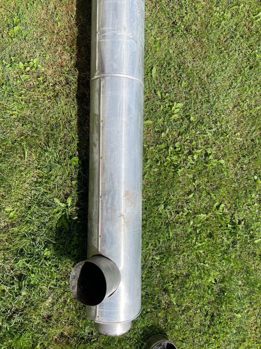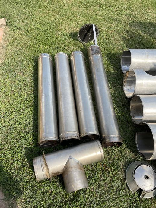 Prodajem inox dimnjak s dimovodom fi160mm (16cm), korišten dvije godine za centalnu peć na drva. U dobrom stanju, dužina dimovoda je 4450mm (4.45m) od vrha dimovoda do kondenzacijske posude odnosno 4200mm (4.20m) do otvora za cijev iz peći. Dimnjak je rastavljen i očišćen, bez izolacije. Na slikama je još uvijek sastavljen, ali ću ubaciti slike u rastavljenom stanju. Uz dimovod i oplatu dolaze kondenzacijska posuda, kapa dimnjaka, zidni nosači i prsteni za montažu na zidne nosače. Cijena je fiksna, 350€. Javiti se na 0915485702, na SMS poruke ne odgovaram.