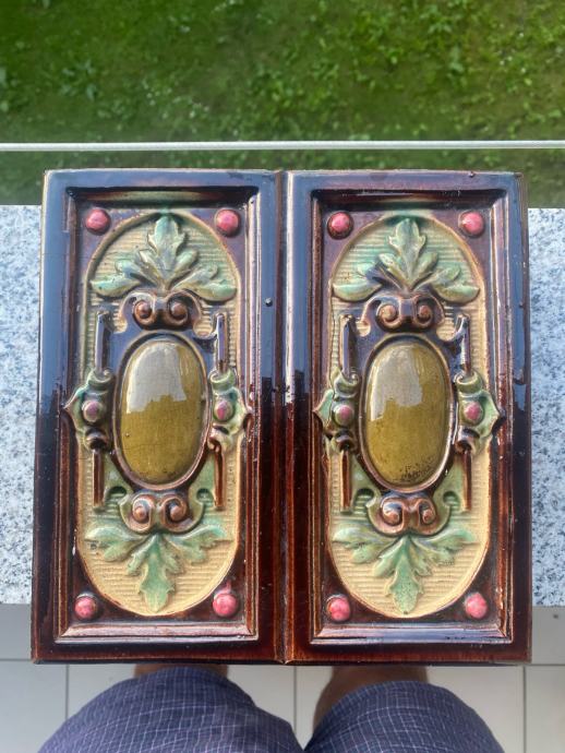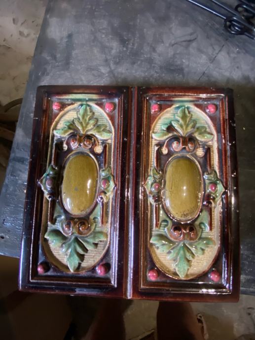 Secesijska peć iz tvornice Josipa Kaline Kalline stara vise od 120 godina originalno ložište ima elemenata koji su puknuli jako malo ali mogu se složiti iza pa se ne vide. Jako je rijetka dezen prekrasan nema takve na tržištu. Može se složiti kamin dimenzija cca širine 50 cm, dužine 100 cm, visine cca 150 cm. Jako povoljno obzirom na vrijednost i kvalitetu