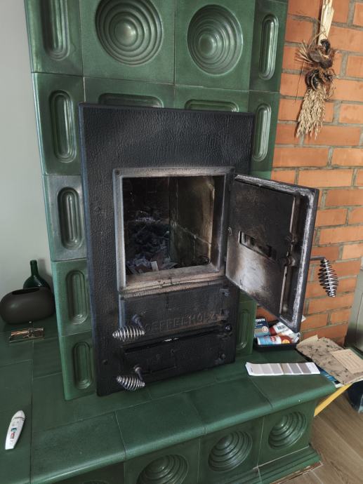 Uščuvana kaljeva peć sa uloškom od ljevanog željeza što znači da su opeke od same peći iznutra u odličnom stanju.