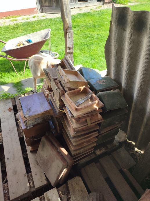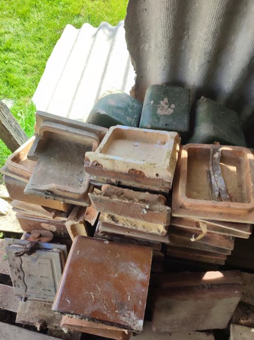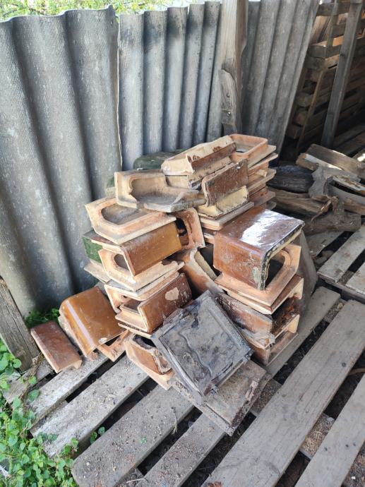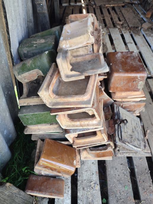 Prodajem 22 kom. zelenih kaljevih elemenata i 55 smeđih te dvoja željezna vrata za peć. Cijena za sve je 30 eura. Može i zamjena za kukuruz u zrnu.