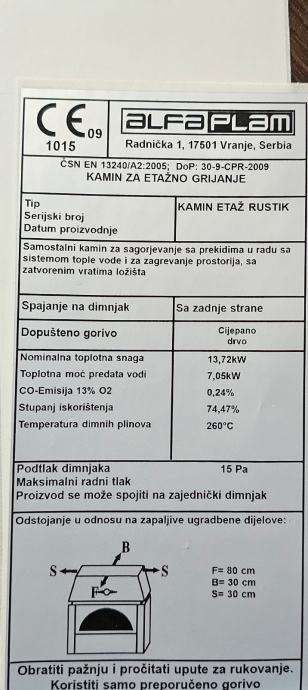 Prodajem kamin za etažno grijanje, alfa plam rustik,14kw,koristena jednu sezonu,cijena nije fiksna