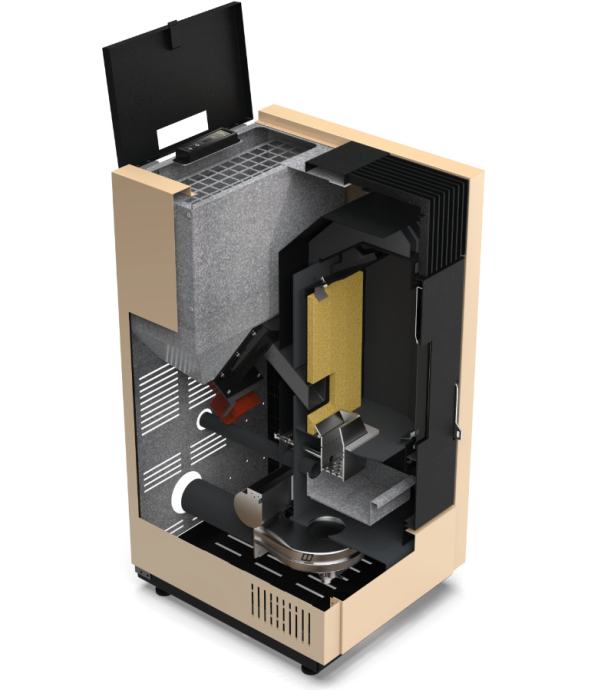 Terma kamin na pelete Lara tehnološki je unaprijeđen kao rezultat višegodišnjih testiranja i vrhunskih komponenti ugređenih u njega.