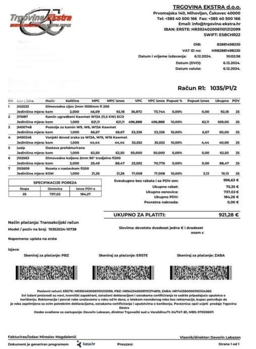 Kawmet w13, 11,5 kw, sa postoljem dimovodnim cijevima i koljenima.