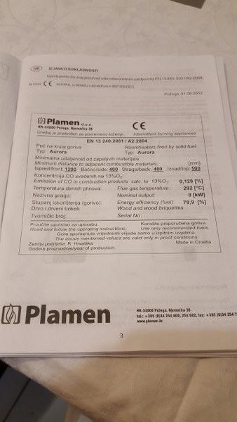 PRODAJE SE KAMINSKA PEĆ PLAMEN - MODELA AURORA S DIMOVODNIM KANALOM ( CIJEV ) , SNAGA: 8 KW, ODVOD DIMNIH PLINOVA - 150 mm., STARA 2,5 GODINE. MATERIJAL: LIJEVANO ŽELJEZO (SVE).