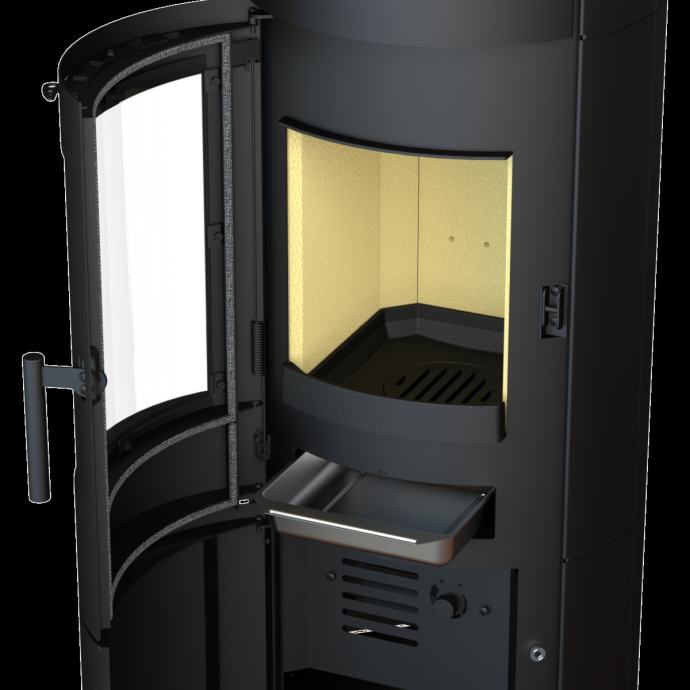 Model moderne klasike će se uklopiti u svaki stil prostora. Svoje vrline pokazuje kroz blago zaobljeno staklo uz dodatak automatskog regulatora topline ispod ložišta i prostora za odlaganje šalice čaja iznad ložišta. Visoko-kvalitetna kaminska peć nominalne snage 7 kW s pristupačnom cijenom, te privlačnim dizajnom pridodaje udobnosti vašem domu.