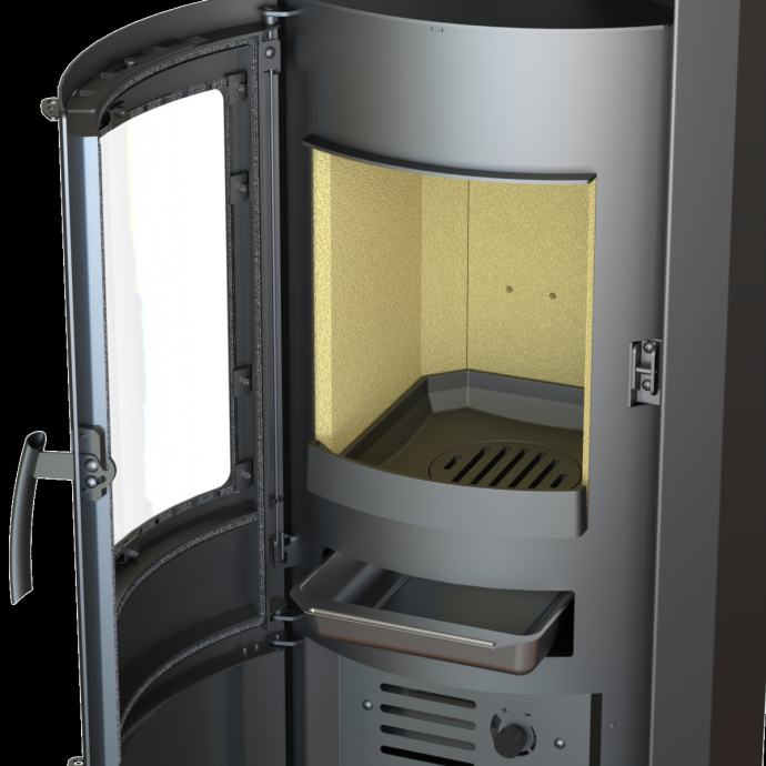 Model moderne klasike će se uklopiti u svaki stil prostora. Svoje vrline pokazuje kroz blago zaobljeno staklo uz dodatak automatskog regulatora topline ispod ložišta i prostora za odlaganje šalice čaja iznad ložišta. Visoko-kvalitetna kaminska peć nominalne snage 7 kW s pristupačnom cijenom, te privlačnim dizajnom pridodaje udobnosti vašem domu.