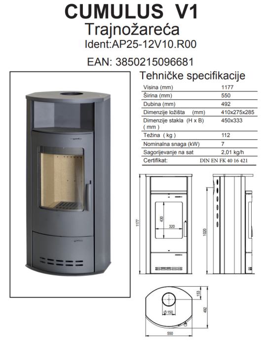 Kaminska peć Thermia Cumulus V1 model je moderne klasike za svaki prostor, zaobljenog stakla sa automatskim regulatorom topline, nominalna snaga 7 kW.