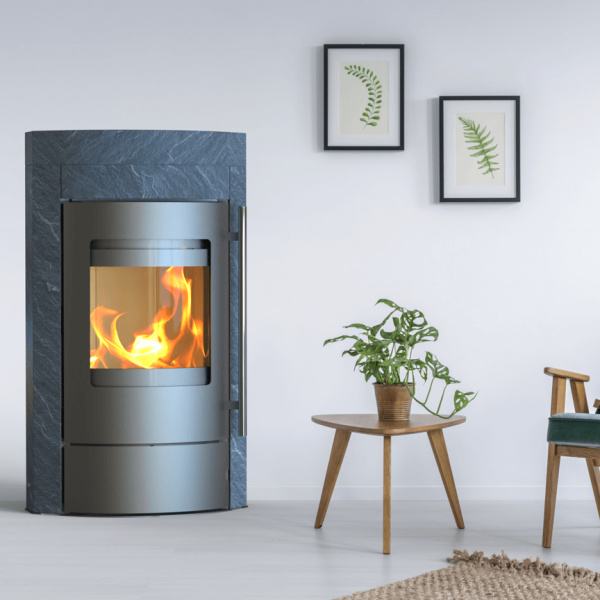Samostojeća kaminska peć na drva Thermia Ignis Mass, sa funkcijom kontinuiranog paljenja za trajno zagrijavanje doma ili u radu nekoliko sati ili preko noći, nominalna snaga 8 kW.