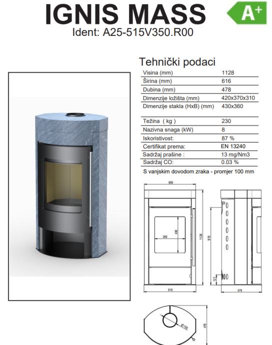 Ignis Mass čini zimu zaista lijepom! Samostojeća kaminska peć na drva s nominalnom toplinskom snagom od 8 kW već se ugodno zagrijala kada se vratite kući iz hladnoće. S funkcijom kontinuiranog paljenja za trajno zagrijavanje stambenih prostora i može ostati u radu nekoliko sati ili preko noći bez potrebe za dodavanjem goriva.