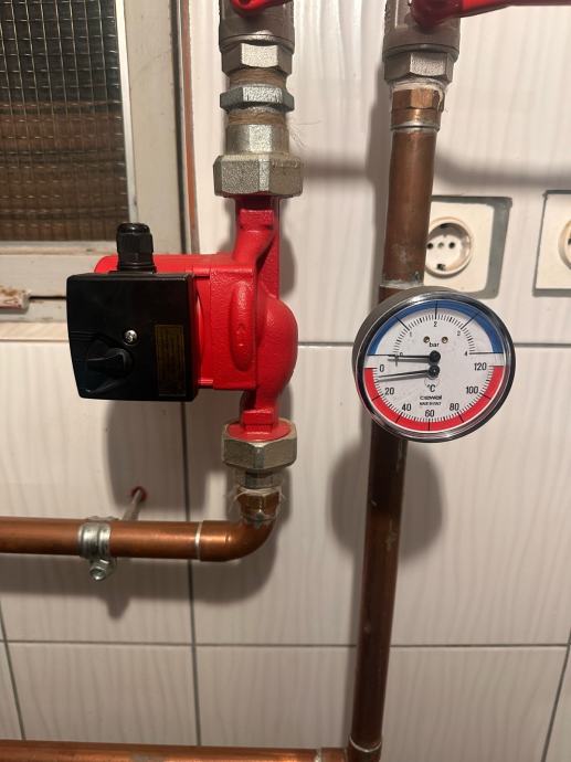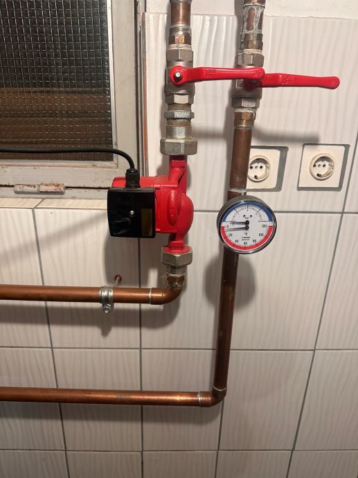 - Bakrene cijevi ( sa slike ) od kotla do hidraulične skretnice pa sve do pumpe