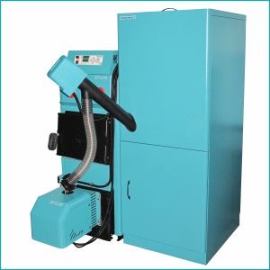 S toplovodnim kotlom čini jednu funkcionalnu cjelinu, ”mini postrojenje” predviđeno za loženje peletima.