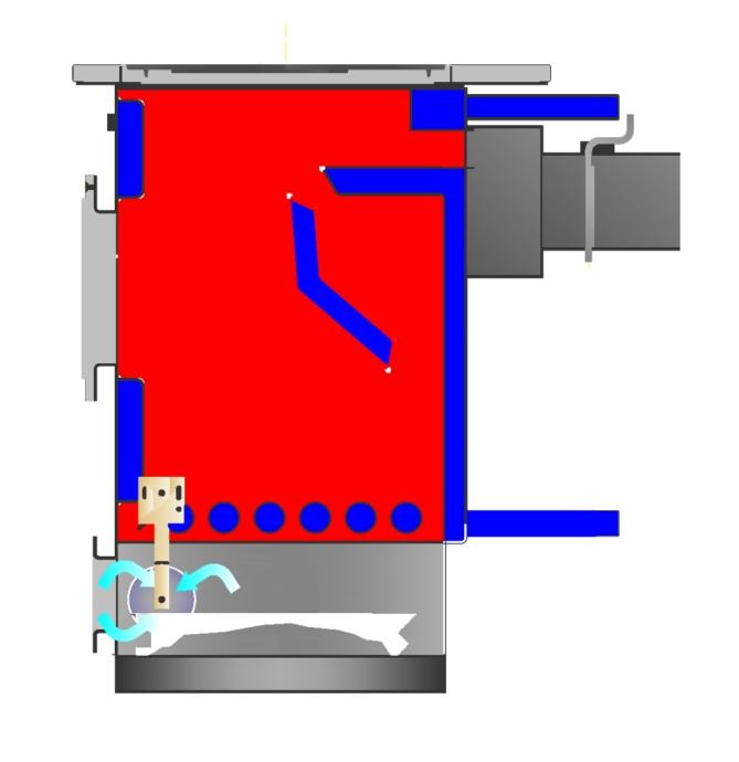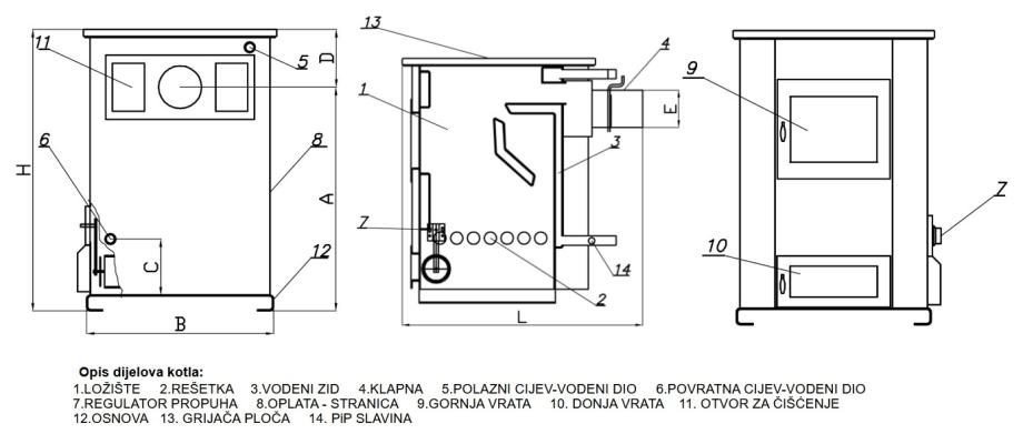 Dimovodni izlaz je samo na zadnjoj strani kotla-štednjaka.
