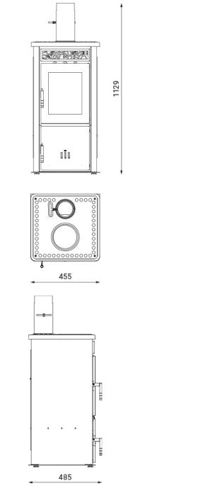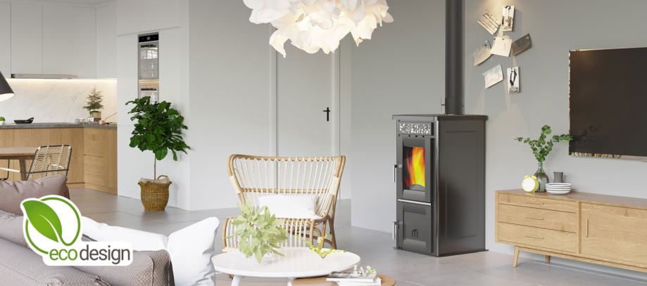 Peć na čvrsto gorivo elegantnog dizajna sa livenim vratima ložišta. Dovod sekundarnog i tercijarnog vazduha u ložište omogućava čistije sagorevanje. Pogled na razigrani plamen kroz veliku staklenu površinu stvara poseban ugođaj u prostoriji.