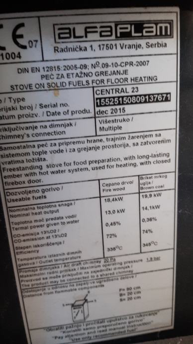 Peć za centralno grijanje, 23 kw, koristena 2 sezone.