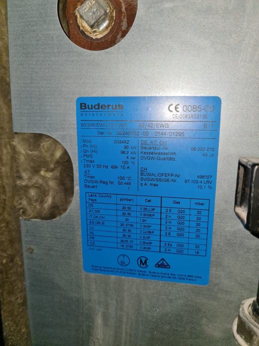 PEC BUDERUS PEĆ NA PLIN 90 KW DVA BOJLERA + PUMPE 2017.SAMO 18 000 HRK