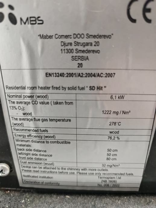 Prodaje se peć na drva snage 6kw,jako malo korištena