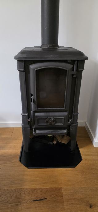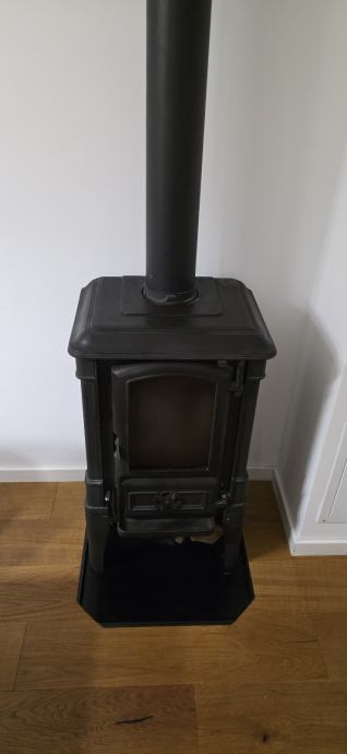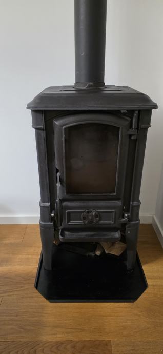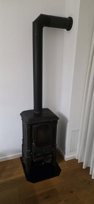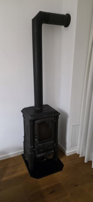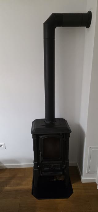 Prodajem peć na drva s odvodom za dimnjak i detektorom ugljičnog monoksida. Peć je crne boje, lijevanog željeza, klasičnog dizajna sa staklenim vratašcima na prednjoj strani koja omogućuju pogled na vatru. U kompletu dolazi cijev za odvod dima koja se spaja na dimnjak.