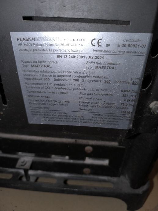 Prodajem peć na drva, PLAMEN tip MAESTRAL. Snaga 6 kW. Vrlo dobro stanje, korištena par zima.