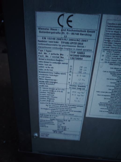 Prodajem ispravnu peć na drva dimenzije: 56š x 45d x 90v.