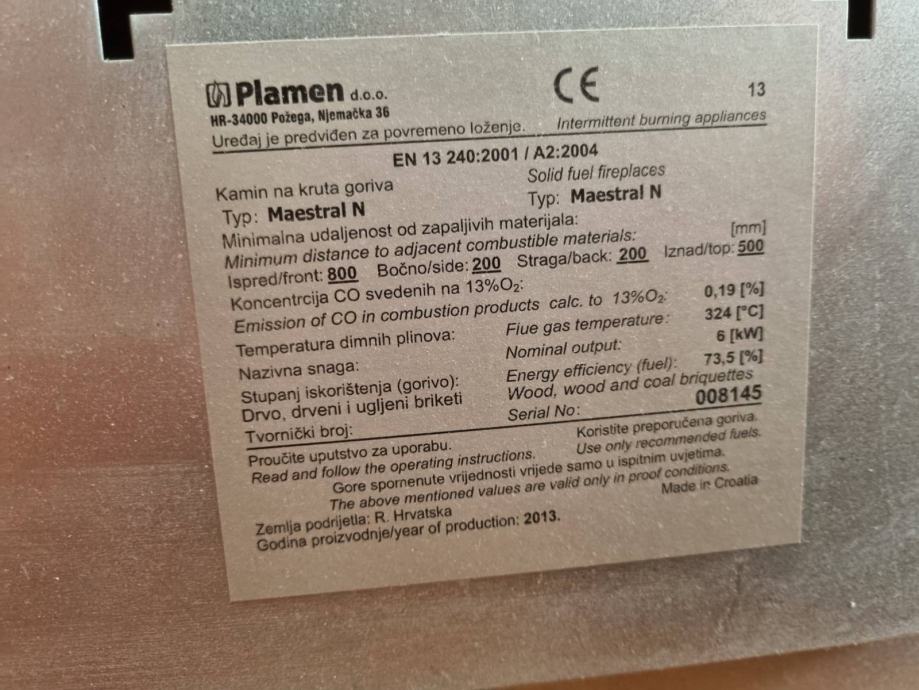 Prodajem peć na drva Plamen, model Maestral N, korištena 4 g. Uz peć ide priključna cijev i usisavač za pepeo Fieldmann