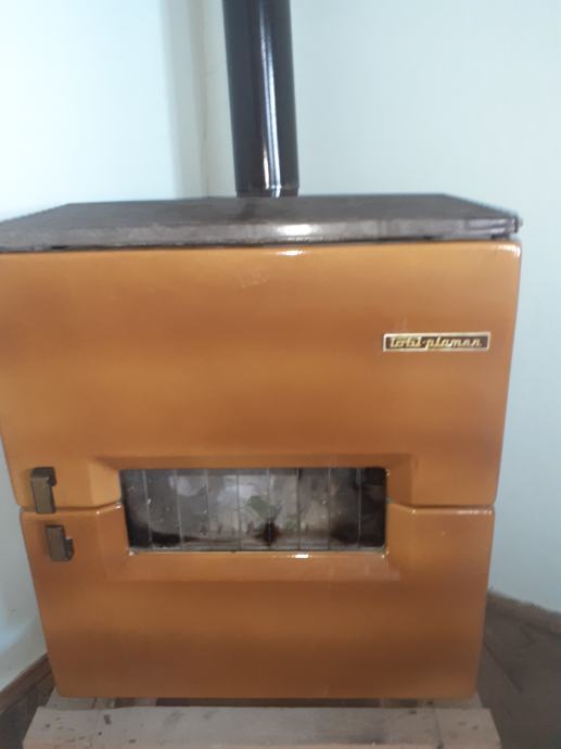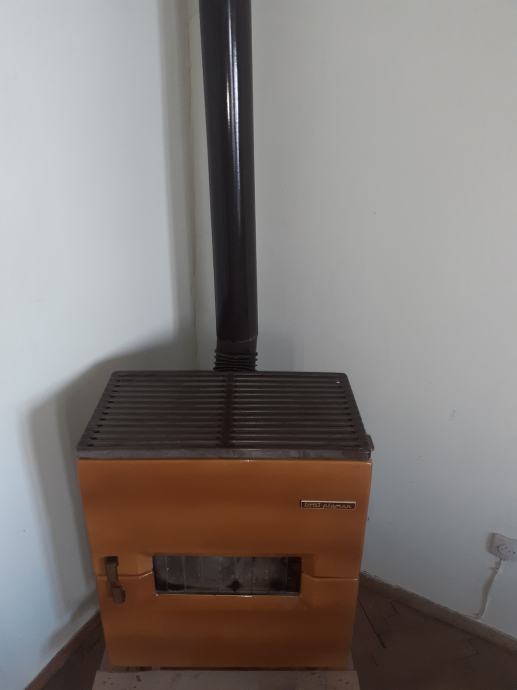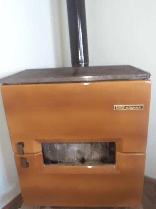 Prodajem rabljenu peć na drva PlaMen narančaste boje. Peć ima stakleni prozorčić na vratima kroz koji se vidi vatra, te rešetku na gornjem dijelu. Dolazi s dimnom cijevi.