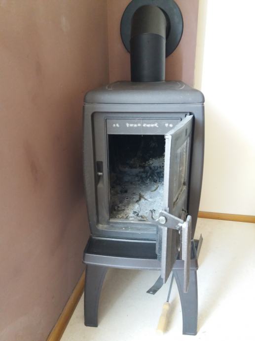zbog pritjecanja sekundarnog zraka kroz gornje otvore uz staklo na vratima ložišta. Isti zrak