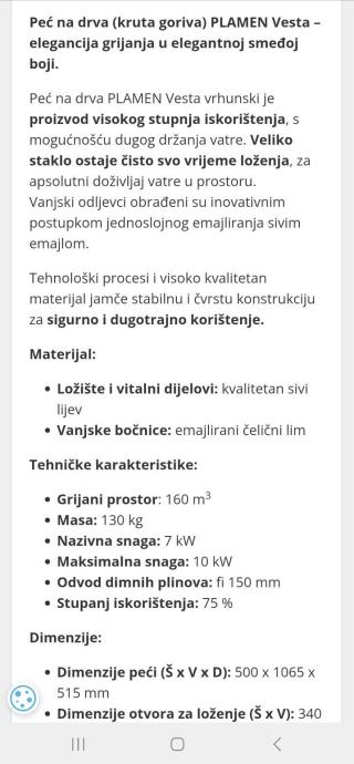 Prodajem peć na drva, Plamen Vesta, u super stanju, 350 €. Peć se nalazi u Orahovici.