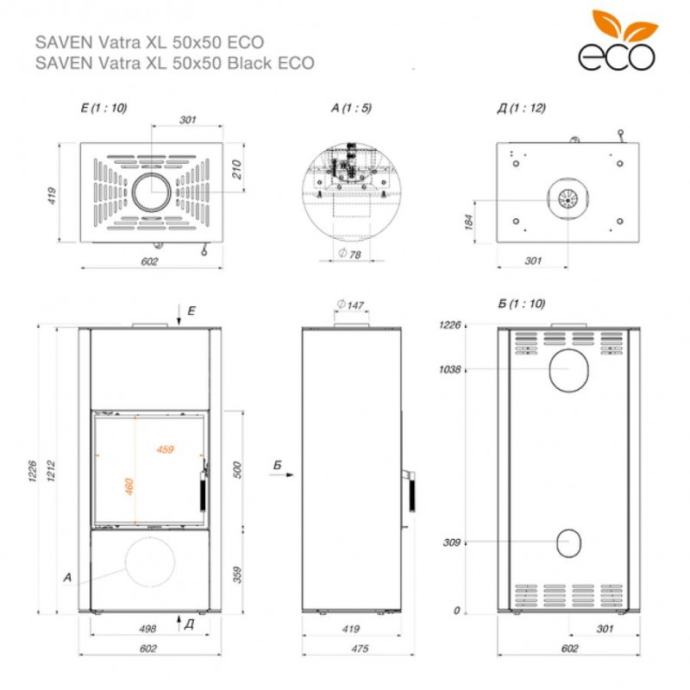 Peć na drva samostojeća SAVEN VATRA XL 50X50 BLACK ECO (8,0 Kw)
