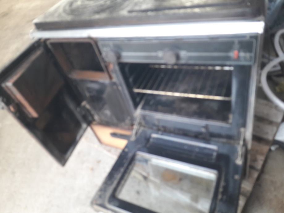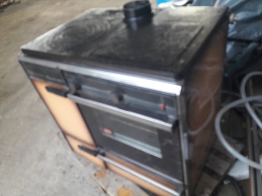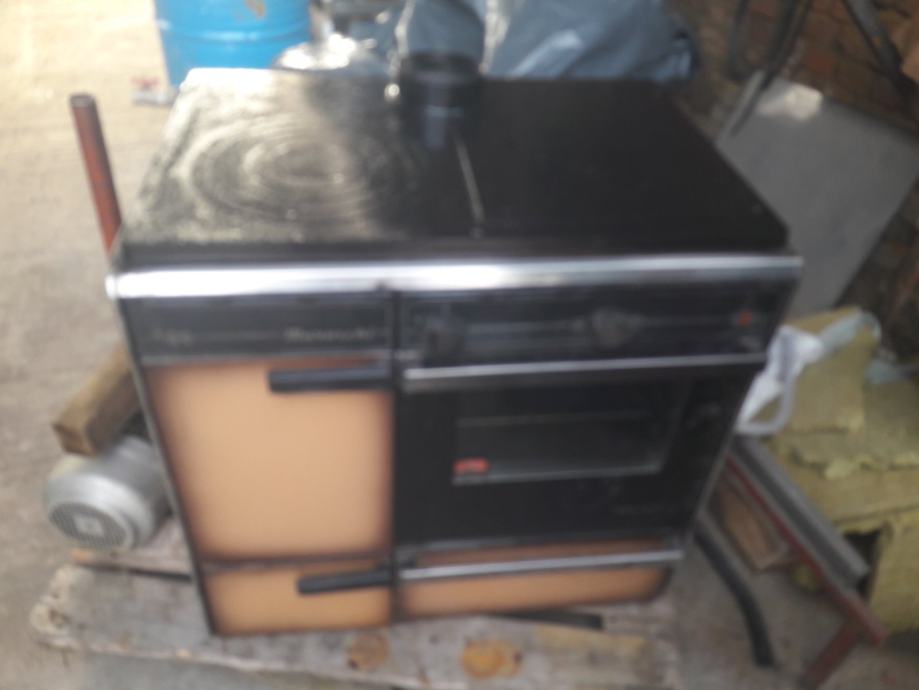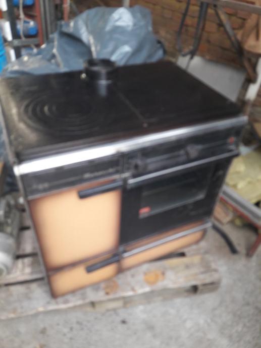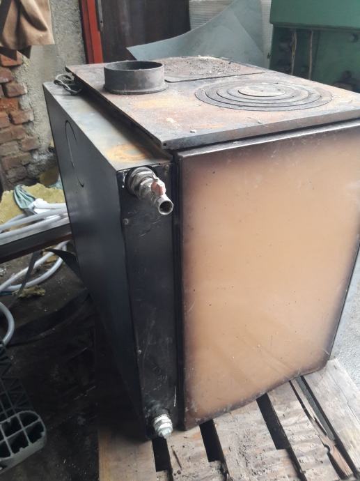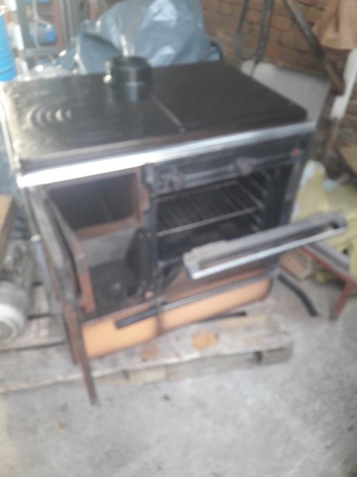 Masivna, rabljena, reparirana, ispitana pod tlakom vode, ispravna. Ima rernu. Dimovodni izlazi: bocni, straznji, gornji.
