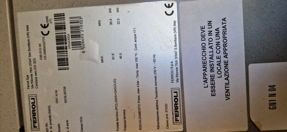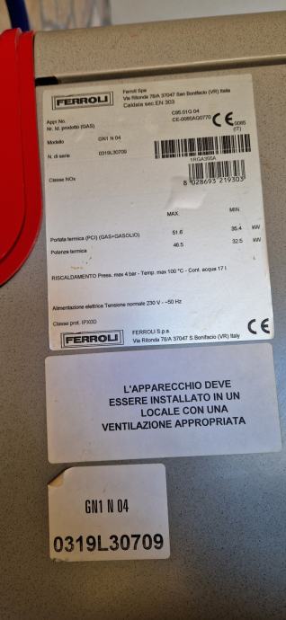 Peć FEROLLI sa plamenikom GEIRSCH na lož ulje. Jako malo korišteno. Prodajem u kompletu.