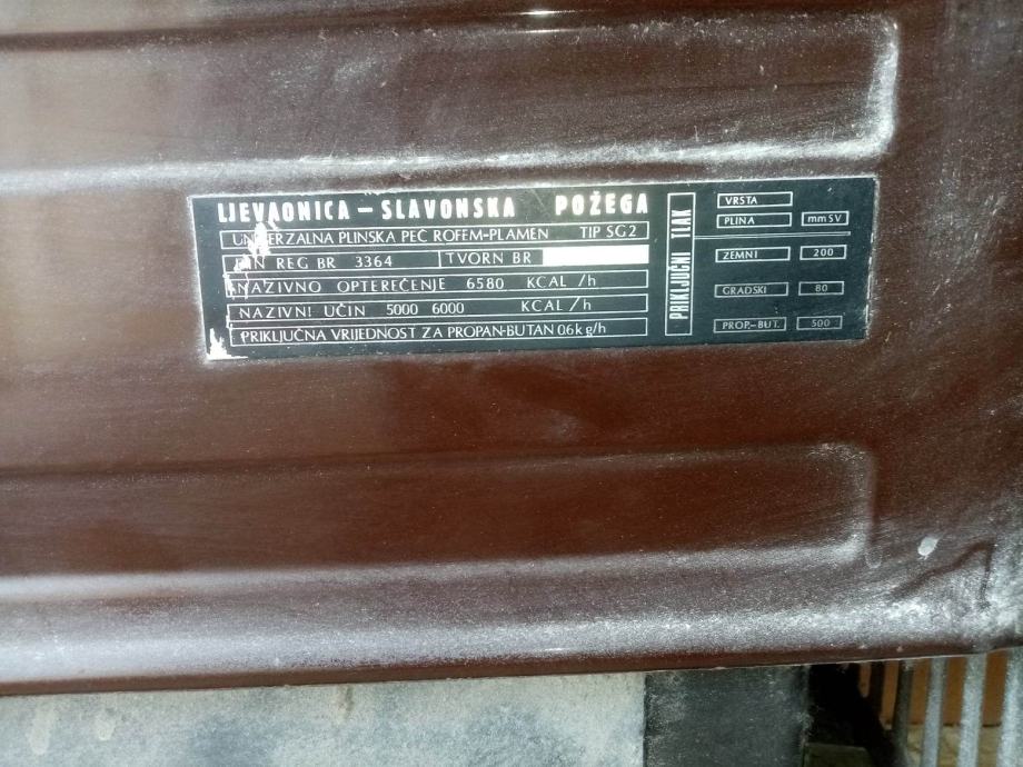 Korištena peć na grsdski plin. V 62 cm bez nogu, sa nogama 73 cm, Š 48, D 24 cm. Prodaje se zbog promjene grijanja.