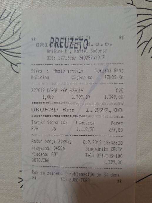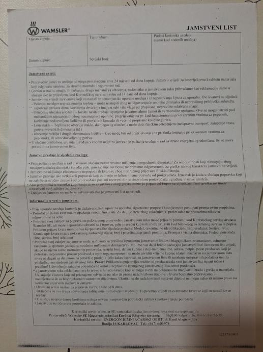 garantni list kao i račun od kupovine u već odavno otišlom centru BRICO STORE u