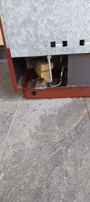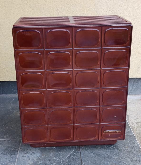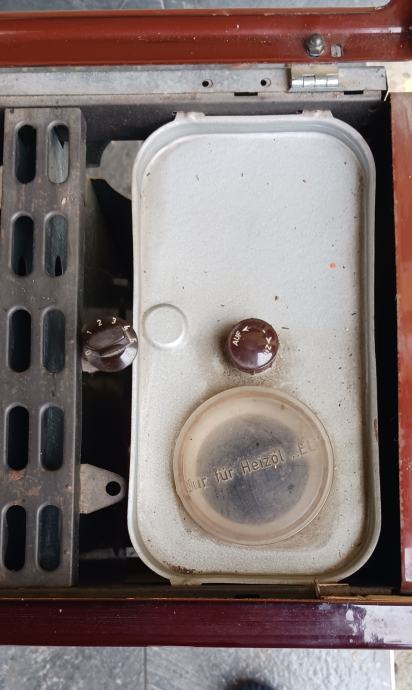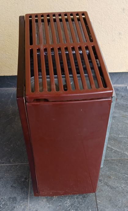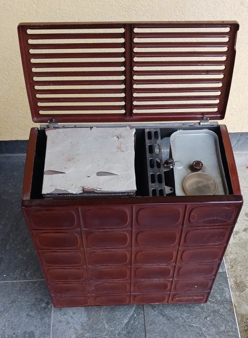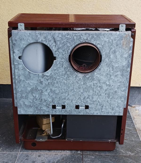 Peć na lož ulje, emajl bez oštećenja. Dimenzija: D:50, Š:30, V:63. Promjer priključka za odvod dima 112mm.