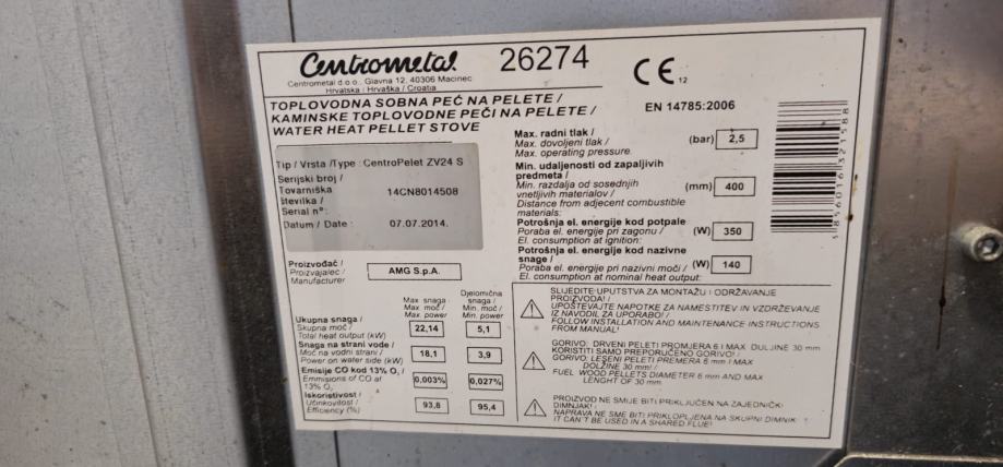 Peć na pelete za centralno grijanje 22 kW - CENTROMETAL CentroPelet ZV