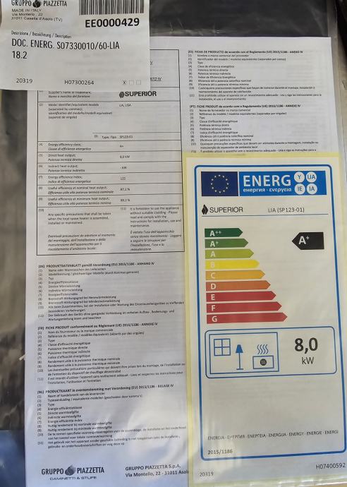 Dimenzije 89x23x112 cm. Snaga 8 kW. Za grijanje prostora od 145 do 245 m3.