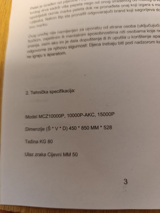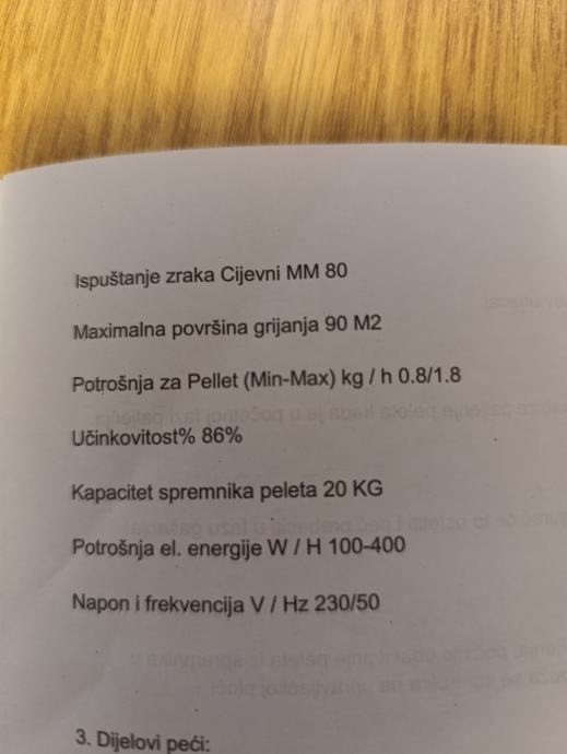 Za dodatnih 100 EUR prodajemo i kaljeno staklo za ispod peći (dimenzije 95 x 70 cm, debljine 1 cm).