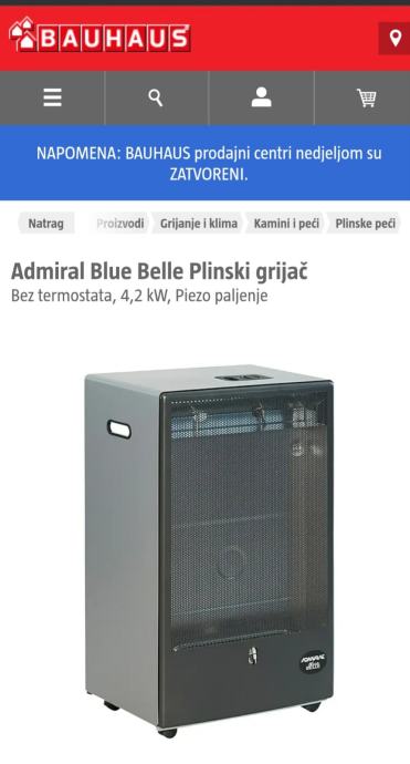 Plinska peć nova kupljena u Bauhausu korištena samo par dana za svadbu.