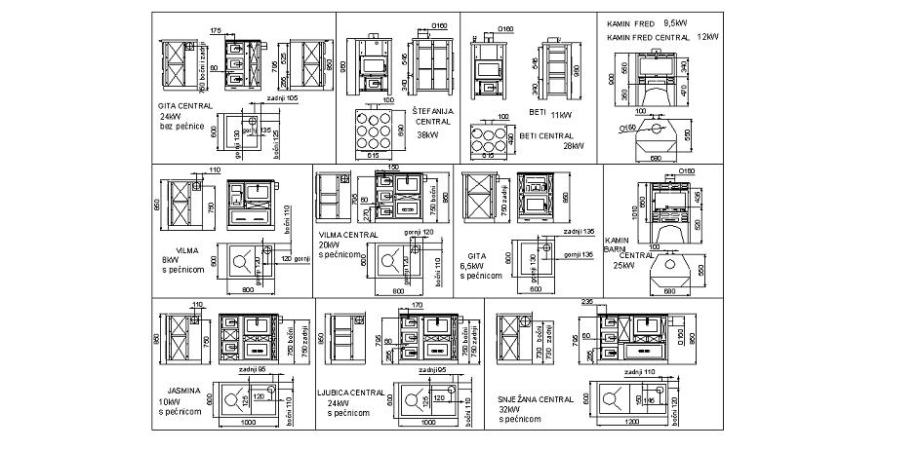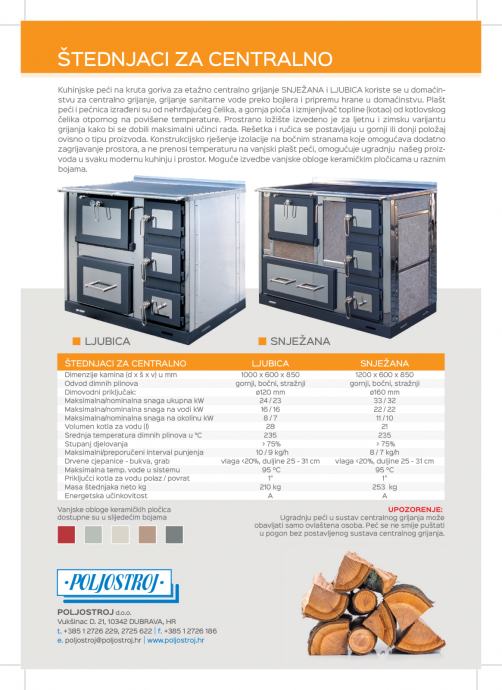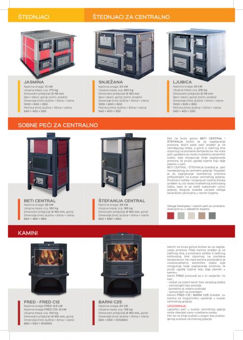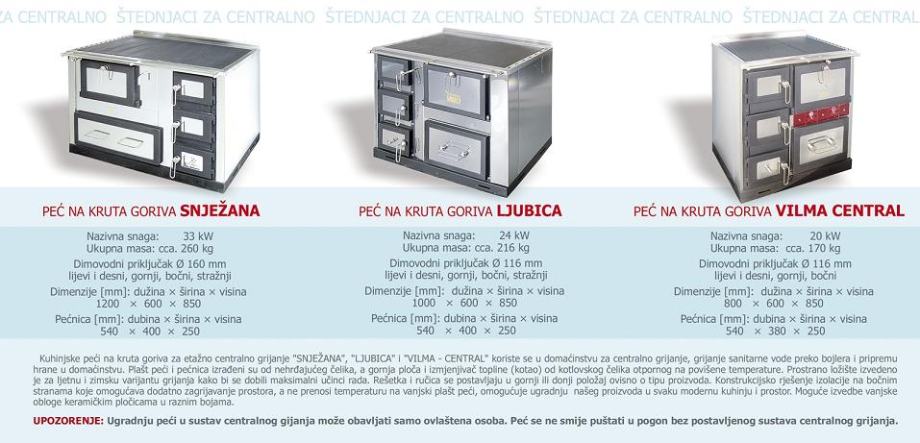 Kuhinjske peći na drva za centralno grijanje "Snježana", “Ljubica”, "Vilma Central" i "Gita Central" koriste se za centralno grijanje, grijanje sanitarne vode preko bojlera i pripremu hrane u domaćinstvu.