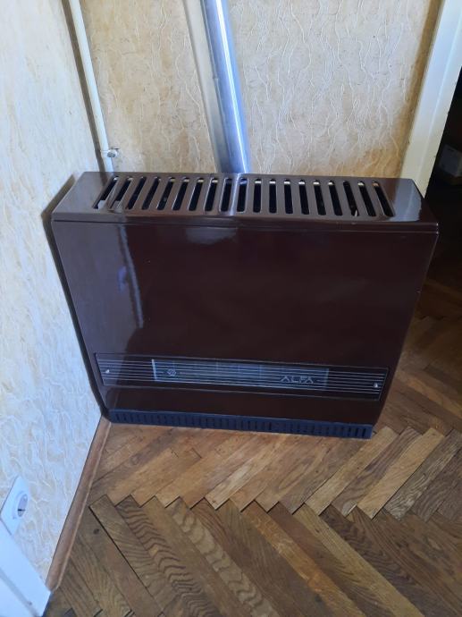 Očuvana plinska peć "ALFA" koja u kratkom roku (cca. 10-15 minuta) ugrije prostor od 80m2. Ne troši puno plina, a kada se ugrije s malom potrošnjom održava postoječu temperaturu prostora.