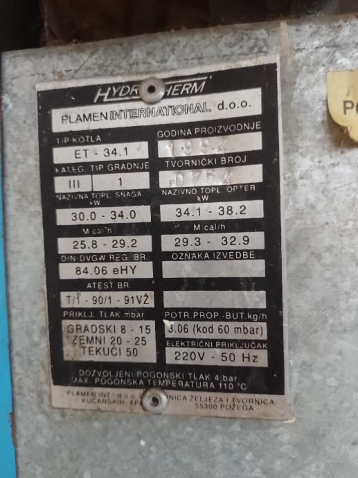 Prodajem plinsku peć za centralno grijanje Hidroterm ET-34,1 snage 30-34kw. Peć je korištena do prije 3 godine,ispravna. Uz peć ide dimovodna cijev 150mm. Informacije na tel099 333 5470