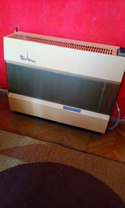 Plinska peć Termo na gradski plin sa gusenim ložištem. Zagrijava bez problema prostor 25-30m2. Izvod za dimnjak ima sa zadnje strane.