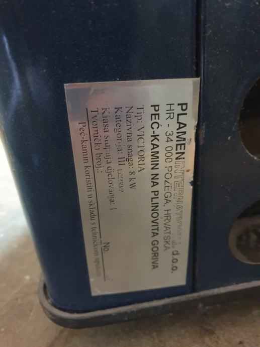 Prodaja ispravne rabljene plinske peći-kamin koja se spaja na dimnjak uz sva pripadajuća crijeva, cijevi, ventile i dimovodne cijevi.