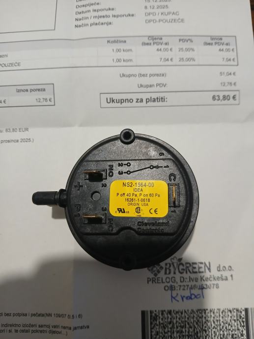 Prodajem novi Presostat za peći na pelet - razni